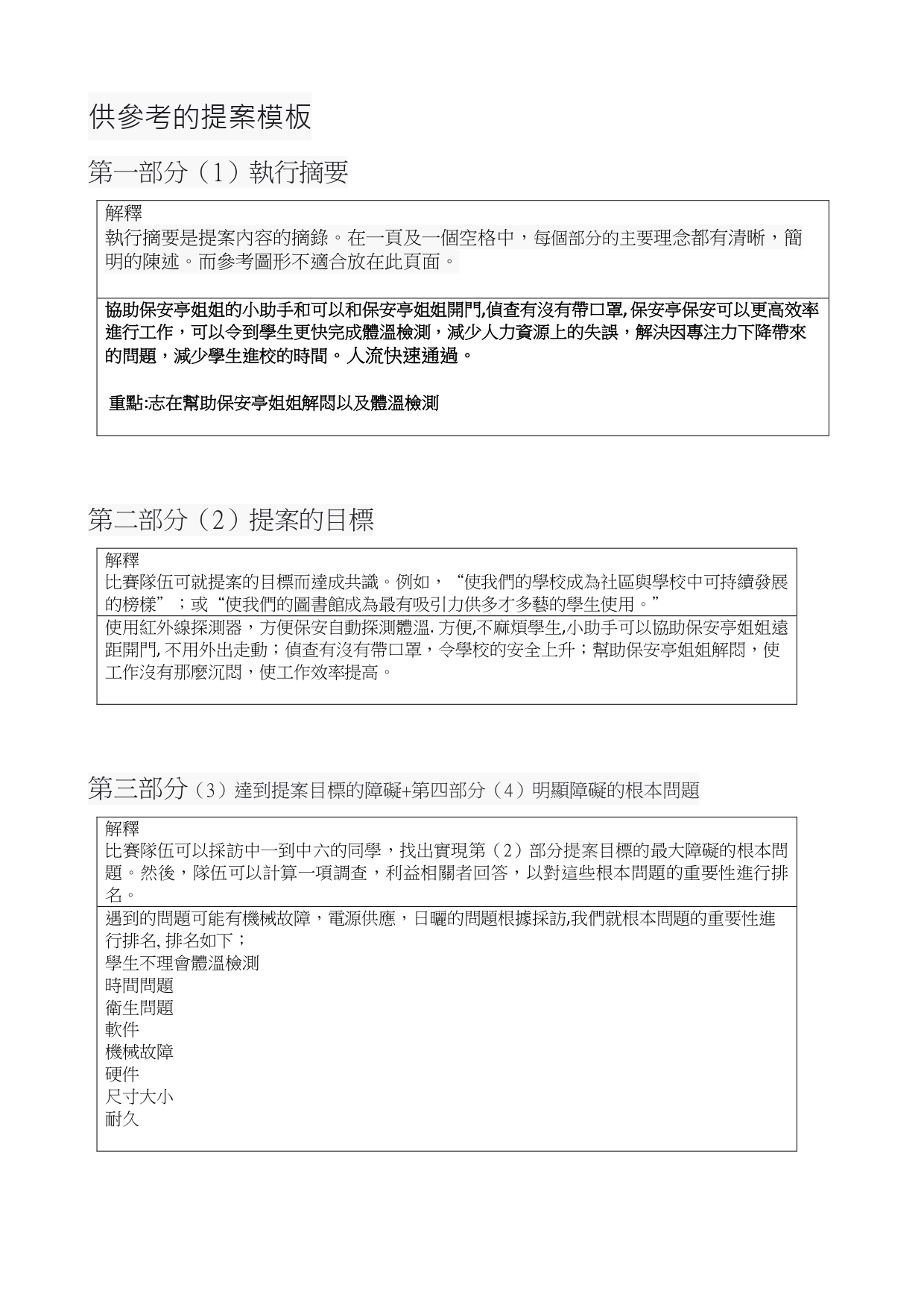 學生簡介中提供的競賽詳細信息(J07)和提案模板的副本將發送給您學校的聯繫老師,以供老師和學生參考。