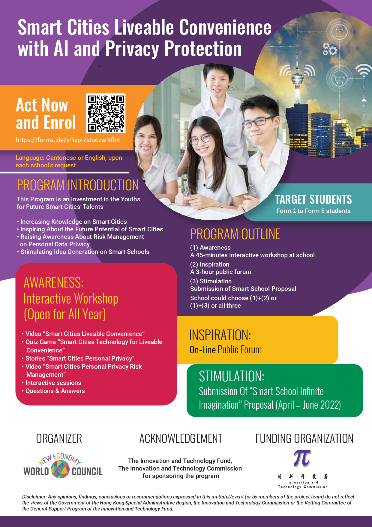 Once you have indicated your intention of participating the Forum along with the Workshop Registration, we will communicate with your school's contact teacher to obtain the number of participants and provide the venue and schedule details before the Forum.