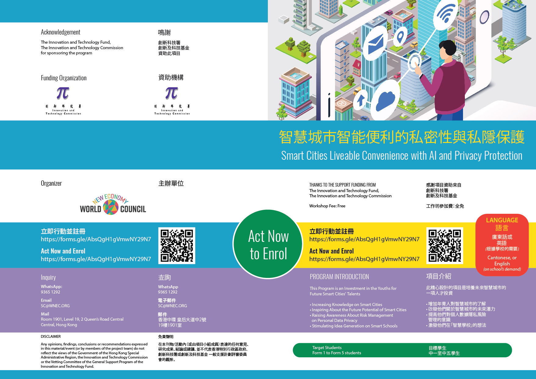 Once you have indicated your intention of participating the Forum along with the Workshop Registration, we will communicate with your school's contact teacher to obtain the number of participants and provide the venue and schedule details before the Forum.